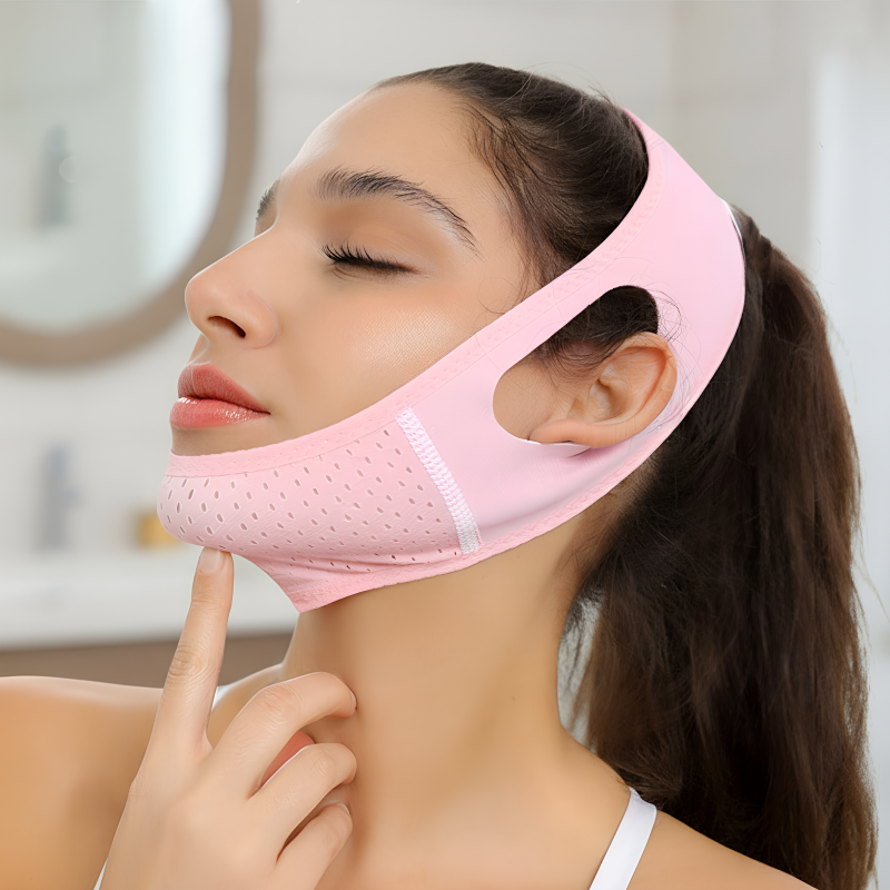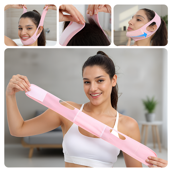 J’étais complexée par mon visage rond, mais maintenant il paraît plus fin. La bande est douce, facile à laver, et ne me dérange absolument pas.