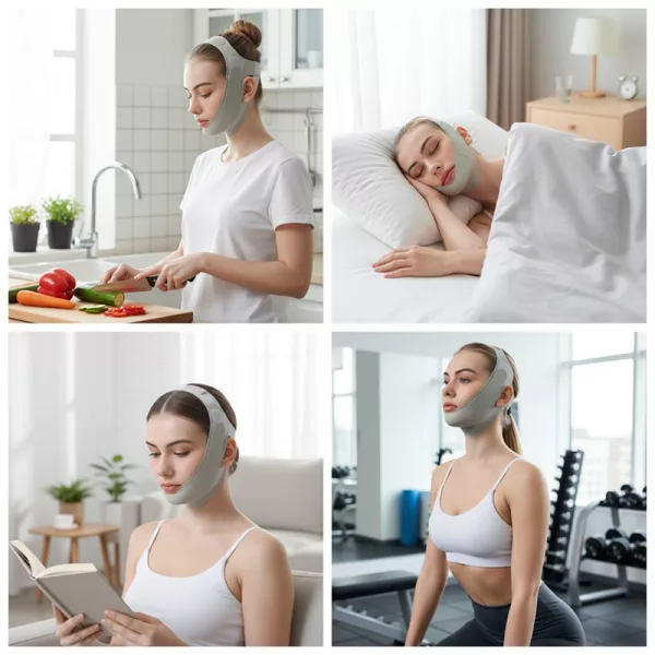 Porter ce bandeau mâchoire la nuit est doux et léger. Je me réveille chaque matin en aimant la différence que je vois sur mon visage.