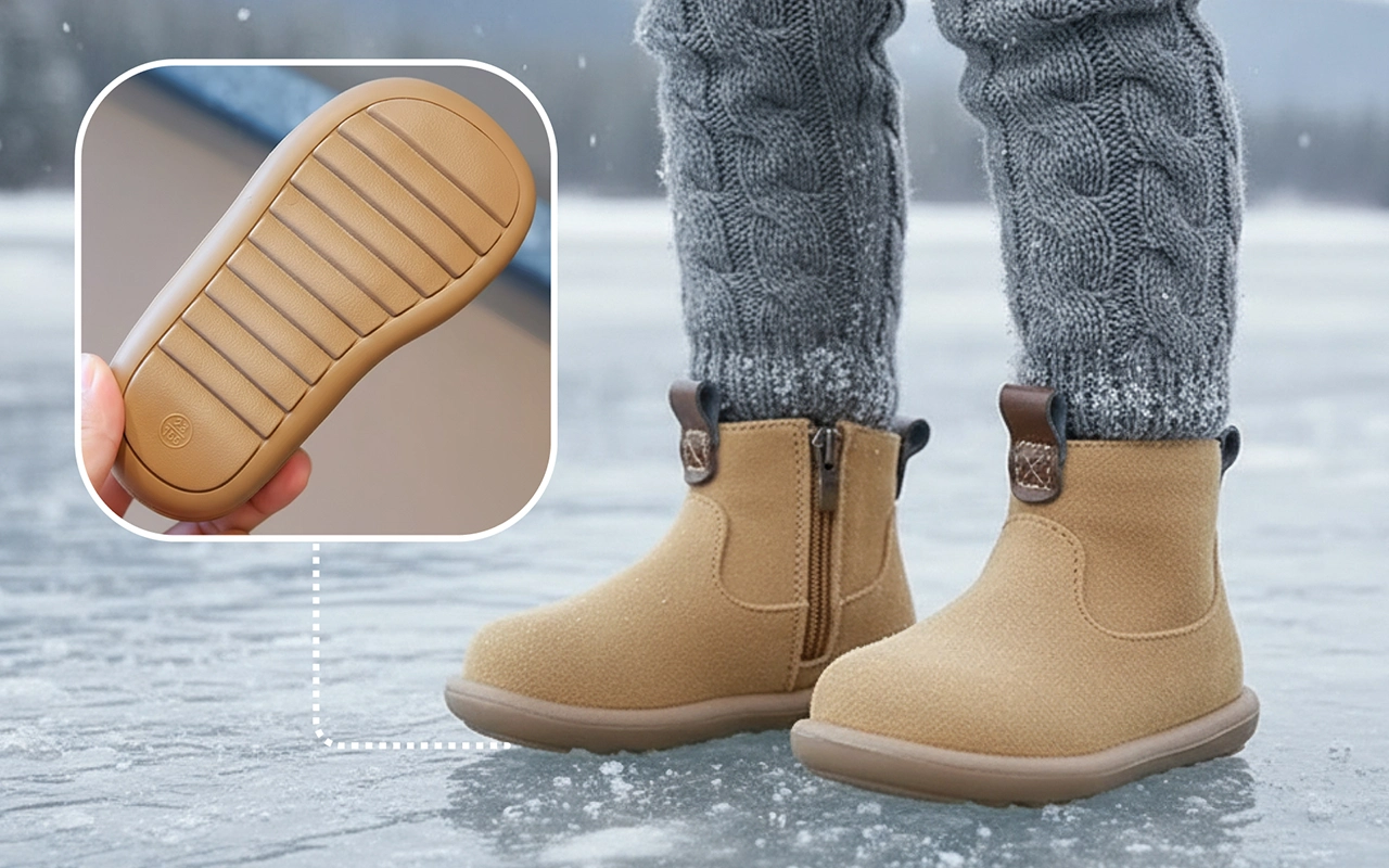 Des semelles antidérapantes évitent les chutes accidentelles sur les sols lisses ou mouillés. Les enfants restent stables sur les aires de jeux, les trottoirs ou les carreaux de classe.