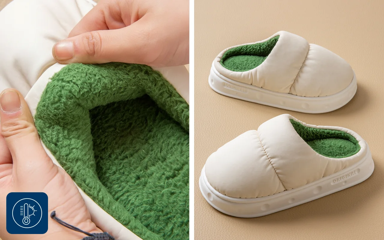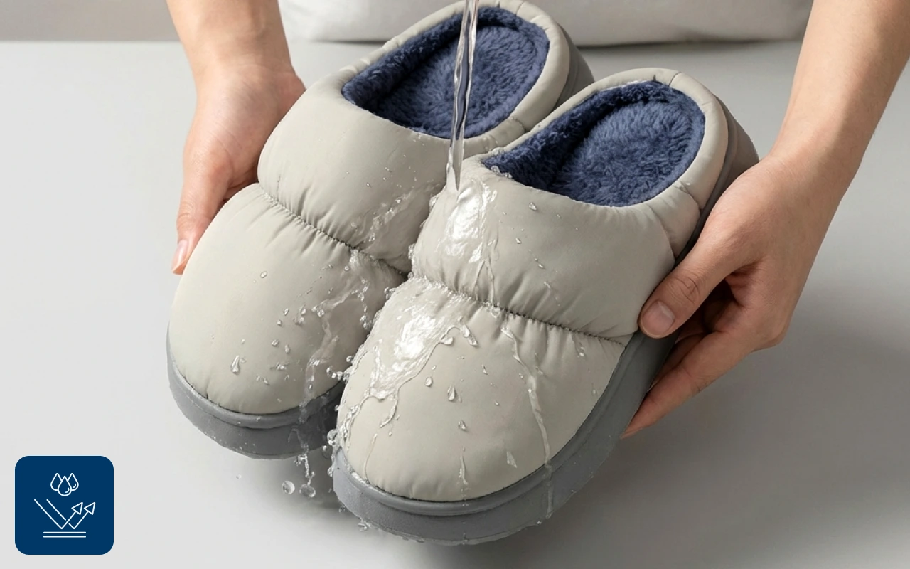 Mes pieds restent au sec même quand je renverse de l’eau dans la cuisine. La semelle étanche est un vrai plus. L’intérieur est super moelleux !