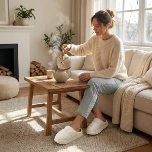 Je peux marcher dans toute la maison sans chaussettes car les chaussons gardent mes pieds doux et protégés du sol froid.