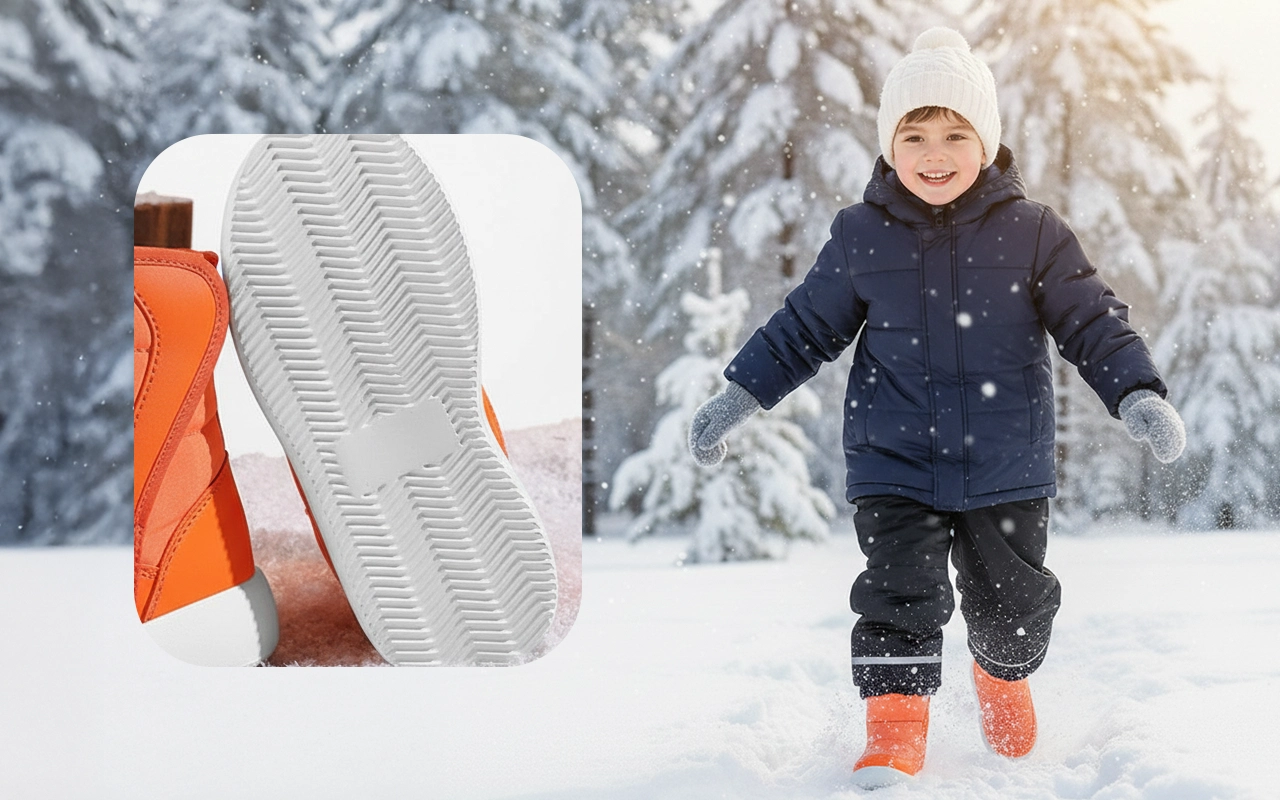 Les semelles texturées offrent une excellente adhérence sur les chemins verglacés ou mouillés. Moins d'inquiétude pour les glissades lors des promenades sous la neige ou sur le chemin de l’école.