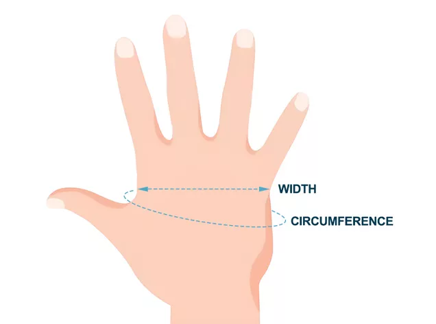 | SIZE | PALM WIDTH | PALM CIRCUMFERENCE | ||