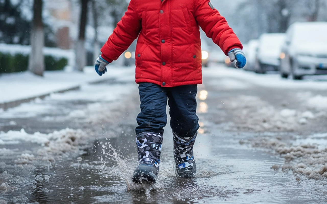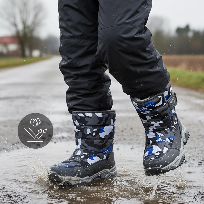 L'eau reste à l'extérieur, gardant les chaussettes totalement sèches toute la journée. Les enfants peuvent sauter dans les flaques ou la neige sans aucun souci.