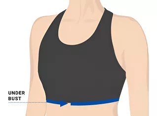 - 2. Pour mesurer le tour de dessous de poitrine, enroulez le mètre ruban autour de votre cage thoracique, directement et uniformément sous votre poitrine.