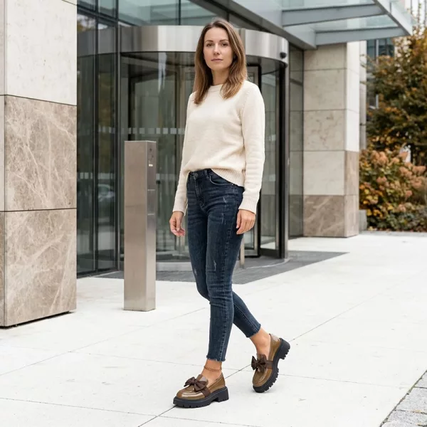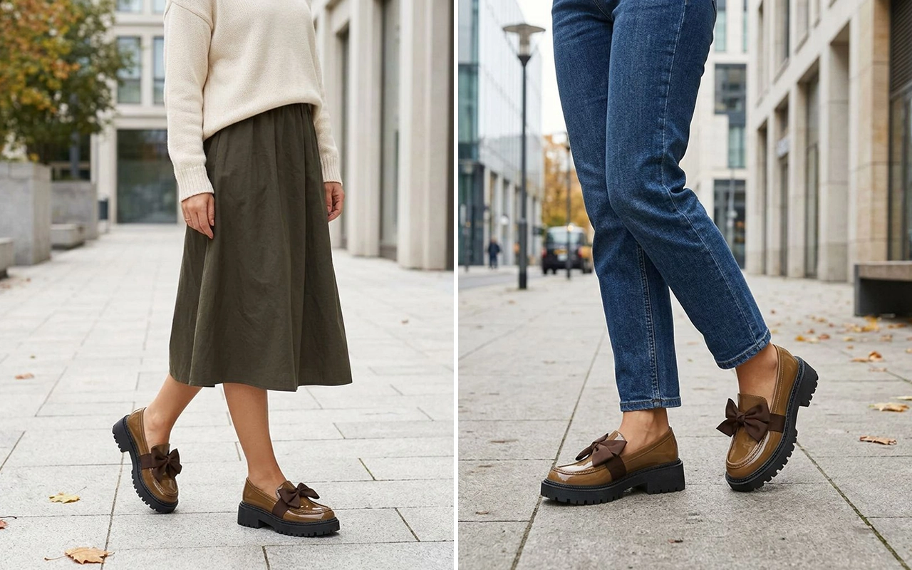 La silhouette britannique classique se marie parfaitement avec jeans, jupes et robes. Les plateformes Ortorex passent des cours aux dîners, évitant les changements de tenue.