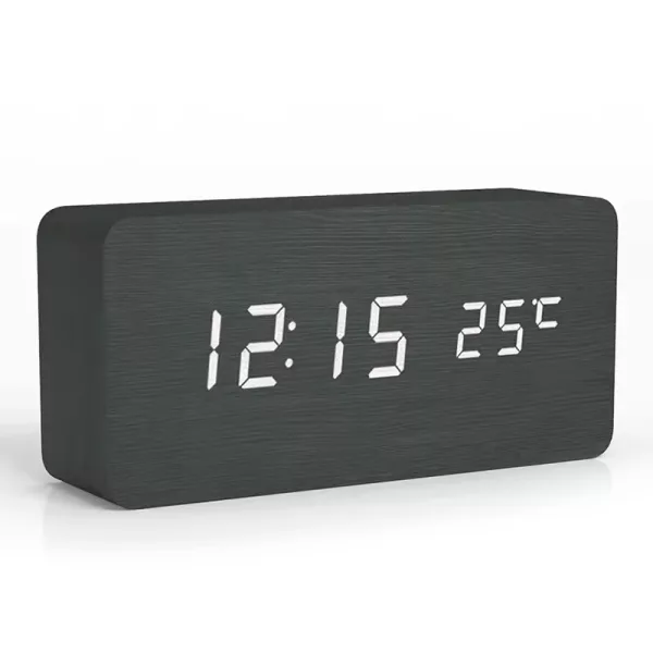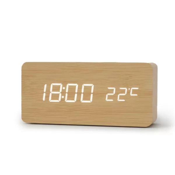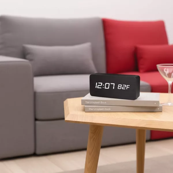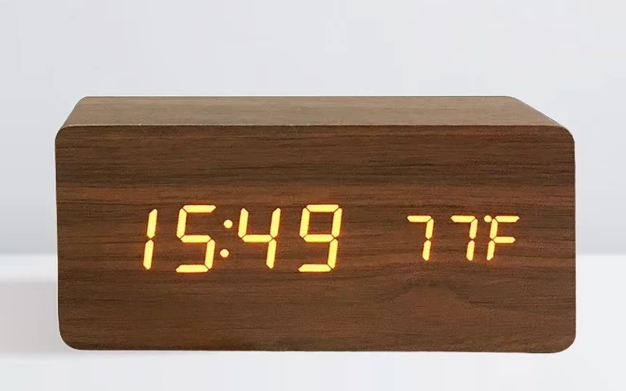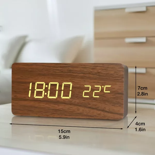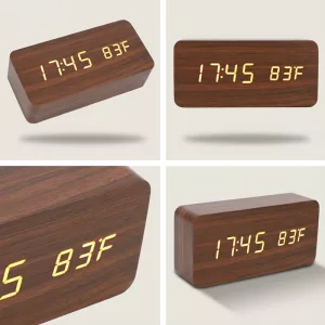 C’est super que cette horloge indique aussi la température de la pièce. Je trouve que la finition bois rend ma table de nuit plus chic. Très contente de mon achat.