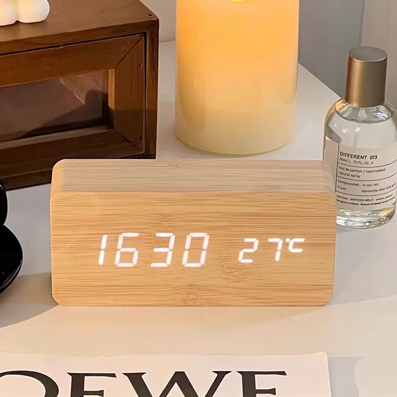 C’est super que cette horloge indique aussi la température de la pièce. Je trouve que la finition bois rend ma table de nuit plus chic. Très contente de mon achat.