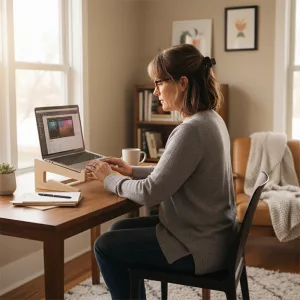 Chaque matin, je m’installe près de la fenêtre avec mon café et mon ordinateur sur ce support. Le bois est chaleureux et il ne glisse jamais quand je tape.